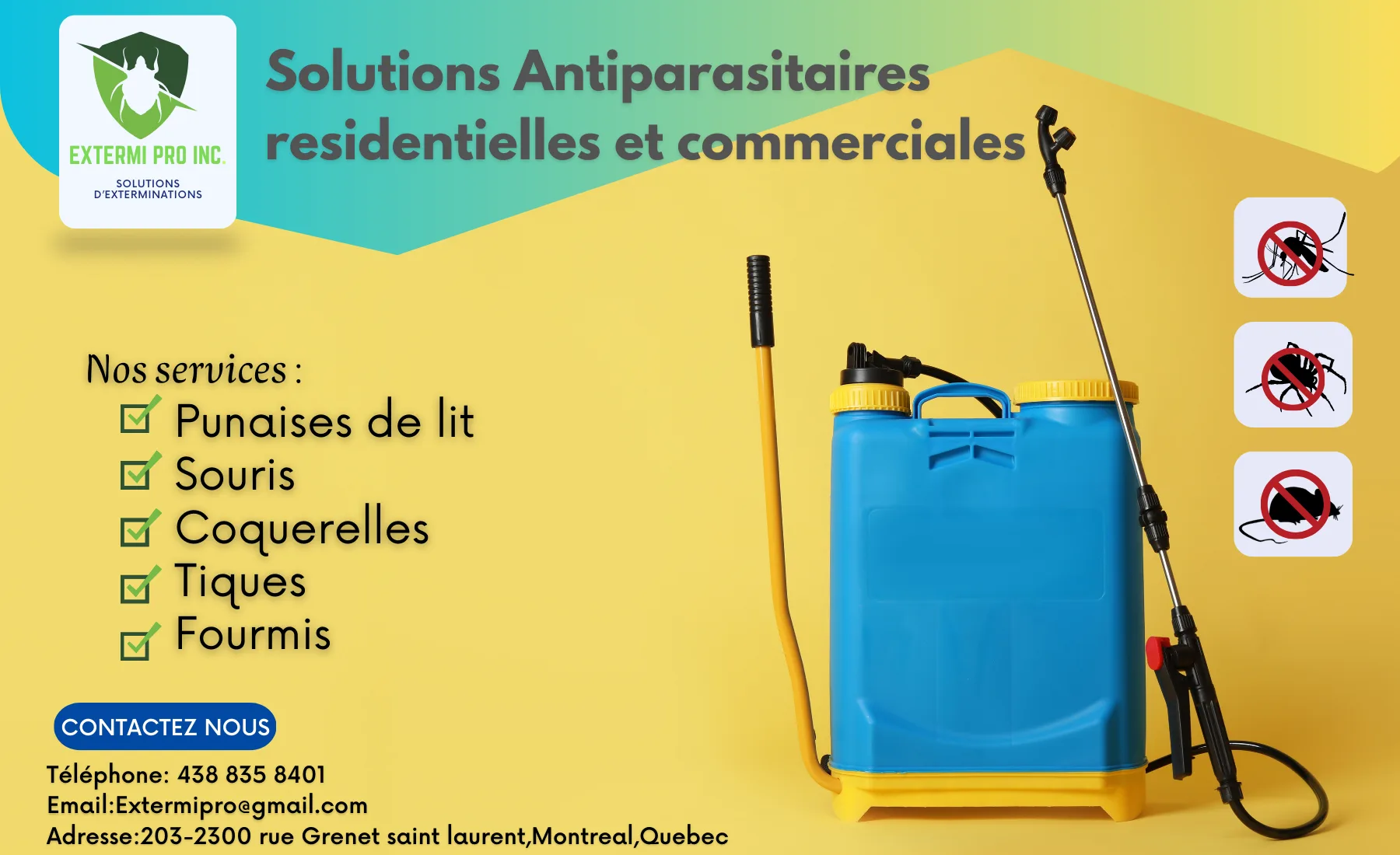 Extermi Pro Inc. – Service d’extermination professionnel à Montréal. Interventions rapides et certifiées contre tous les nuisibles.